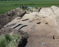 Mindezek nyomán 2016 májusában mintegy 300 m2 területen kezdtük meg a szondázó feltárást. A homokos altalajban összesen 19 objektumot tártunk fel, melyek közül 8 honfoglalás kori és egy zsugorított bronzkori temetkezés volt. A sírok a szántáshatáron helyezkedtek el többnyire, így nagy részüket jelentős újkori bolygatás érte, az egyik sír ugyanakkor korabeli rablás áldozata lett. A homokdomb gerincén elhelyezkedő É‒D-i irányú sírsorokból összesen hármat találtunk, a temető északi és déli irányban még folytatódik.