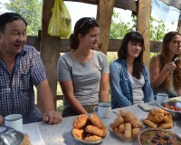Baskíriai elutazásunk előtt magyaros vacsorával kedveskedtünk vendéglátóinknak: a kiváló slambuc Gallina Zsolt nevelőtanár vezetésével készült el. Ufából mintegy 10 órás vonatozást követően érkeztünk meg a Volga parti Szamarába. A 700 km-es út kelet-nyugati irányban szelte át a tankönyvekben szereplő egykori Magna Hungaria feltételezett területét. A Volga partján Dmitrij Sztasenkov régész várt bennünket, aki a szamarai Volga-könyök kora középkori régészeti emlékeit és földrajzi környezetét mutatta be nekünk, illetve részt vettünk a 7–9. századi zsiguljovszki temető feltárásán. A Volga-könyök déli részén meglátogattuk a Novinki-típusú lelőhelyek térségét, és közben megkóstoltuk a híres volgai füstölt halat is. A szamarai régészeti tábortól elköszönve Sirjajevo térségében a volgai bolgár állam egykori déli határát jelző emlékműnél hajóra szálltunk és visszatértünk Szamarába. Az expedíciót vonaton folytattuk tovább Kazanyba, Tatárföld gyönyörű fővárosába, ahol első utunk a túra egyik csúcspontjának számító Ibn Fadlan-kiállításhoz vezetett. A lenyűgöző tárlat kiváló áttekintést ad a 9–11. század kelet-európai és közép-ázsiai történeti és régészeti hátteréről, de ami a legfontosabb: számos új leletet mutat be, melyek a honfoglalás kori hagyaték keleti kapcsolatrendszerének újabb bizonyítékai.
